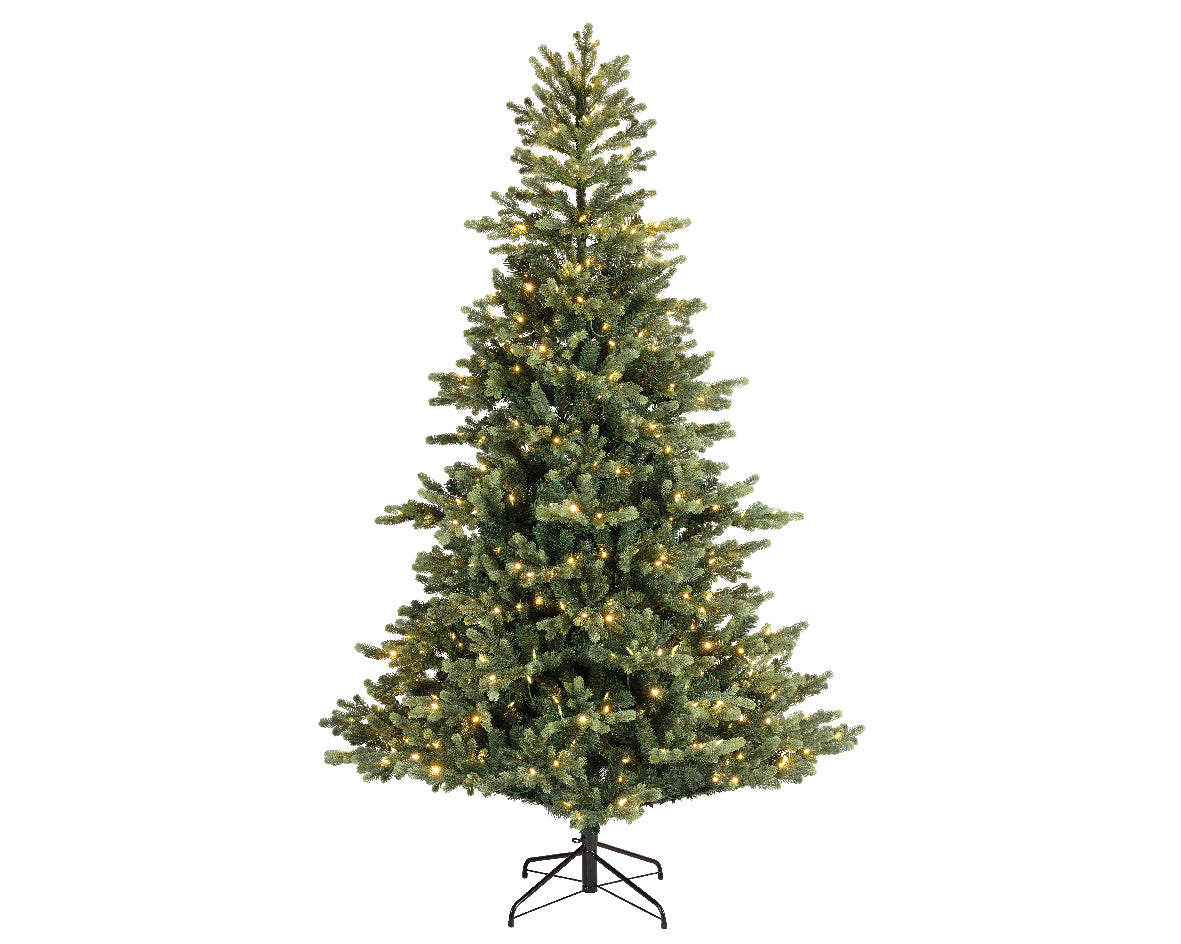 Bring the magic of Christmas into your home with the Everlands 7.5ft Pre Lit Geneva Fir Artificial Christmas Tree. The unique mixture of PVC and PE branches creates a deceptively real look and feel Christmas tree. The tree is easy to assemble, as well as take down and store thanks to a simple, robust hinged construction that allows you to smoothly and evenly spread apart the branches. Hinged construction 600 LED's (Warm White/Multi Colour) 8 functions w/foot switch 5m Cable 90 Branches 3053 Tips Max diameter 140cm Metal base included Indoor use only